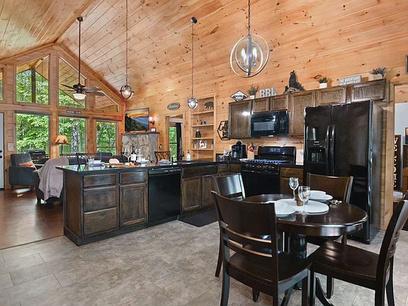 Storybook well maintained 3/2 cabin within minutes to downtown blue ridge, already a successful rental that has all the amenities you could want. Hot tub and game room on the interior and covered screened porches outside. A fenced area for the pets as well as a firepit to relax in the cool evenings. Large windows in the great room allow for large amounts of natural light, lvp flooring throughout, spacious kitchen with granite countertops and breakfast bar. Outdoor storage shed is included as well as a whole house generator for peace of mind. 1.17 acre level lot for privacy, level lot and all wood exterior provide low maintenance, lower than average utility costs and also being sold furnished minus a few items. Would also make a great weekend or full time home. Start your journey in north ga now! Call to schedule a sgowi
