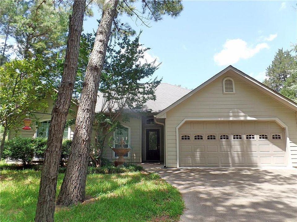Wonderful home at end of quiet cul-de-sac. Lovely tile foyer leading to open concept living, dining, kitchen. Living is spacious with wood-burning fireplace and built-ins. Dining opens to light, bright sunroom, a pleasant space to enjoy your morning coffee. Kitchen with granite countertops, tile backsplash and breakfast bar. Comfortable and spacious master suite with box ceiling overlooks wooded side yard. Master bath with jet tub, walk-in shower, double vanity, separate closets. This well-maintained home is ready for your move-in. EHolly Lake Ranch is a gated, resort community with 24-7 on-site security, 18 hole golf course, lakes, swimming pools, tennis, pickleball, fitness center and more.