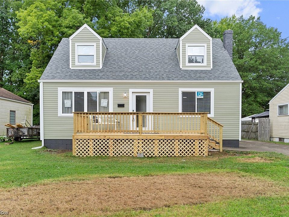 This house will definitely be one that you'll want to see! This beautiful cape cod has been completely updated! Starting on the exterior, new vinyl siding and vinyl windows, new dimensional shingled roof, and a new front porch welcoming you into your home. As you walk in, the new laminate flooring greets you in the large living room area with new light fixtures and freshly painted. The kitchen opens into the dining room area with tons of space with the continue laminate flooring new white cabinets, new laminate countertops, subway backsplash and new stainless appliances. 1 floor bedroom with new carpet and double closet. Full bathroom with new vanity, new tile flooring and ceramic tile walls with a tub. Upstairs hosts 2 good sized bedrooms with carpet. The basement could easily be finished with some new flooring and could offer another area for entertainment. The laundry area offers a second toilet. New HVAC. New 100-amp panel. New hot water tank. New plumbing. Waterproofed basement. N