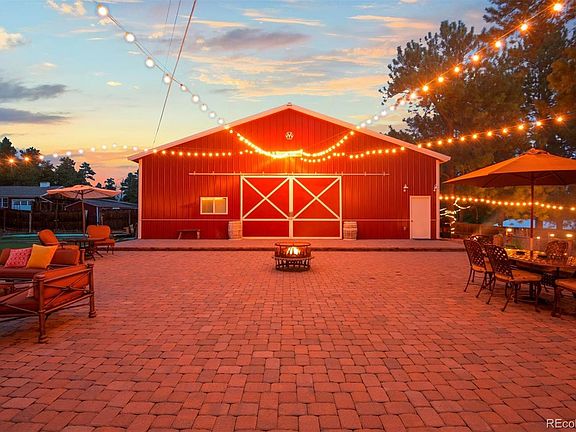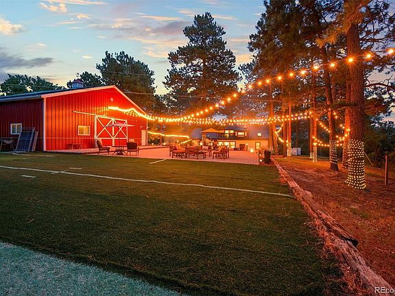 Truly one of a kind, magical opportunity in Perry Park! Original farmhouse has been renovated while maintaining the charm and character of the home and is currently being used as a VRBO rental that sleeps 12. Ideal for multi generational living, zoned for horses, annexed into the City of Larkspur, this homestead is extremely versatile. Original house boasts a new standing seam metal roof and new exterior paint, a new chef’s kitchen complete with double Thor gas ranges with 10 burners, all new stainless appliances, farm sink and granite/cement solid surface countertops. Charming main floor primary suite with tons of natural light, exposed beams, private exit onto one of the numerous patios on property. Eastern facing oversized sunroom bathes the home in light upon entering. Large family room and dining rooms are perfect for entertaining. Upstairs in the main house you’ll find 3 oversized bedrooms and a second floor 3/4 bathroom. In addition to the main house, this whimsical property also features a separate approx 3000 sq ft home which is currently being used for sellers’ primary residence, an additional apartment for family and a VRBO lock off unit all of which feature their own kitchens/kitchenettes, bathrooms, and bedrooms. The lock out VRBO unit has also served as a bridal suite for wedding venues. However, this space could also easily be utilized as one complete home. The main farmhouse and cottage lock off unit enjoy excellent rental histories. Your future home boasts 8 additional outbuildings including 2 oversized barns, loafing sheds with 8’overhangs, storage sheds, hay storage, shipping container, 3 outdoor portalets for special events. The Sellers have utilized the entire parcel as a special event venue (weddings) and All furnishings and all special event trade fixtures are available for purchase in separate negotiations. Owner will carry, info avail upon request. This one is 2 special not to come see!!