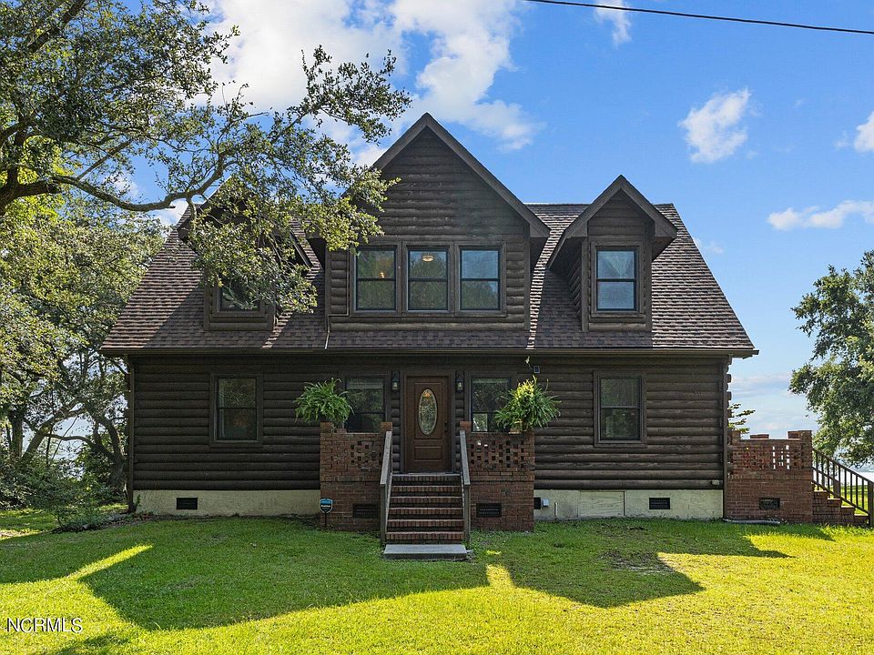 Welcome to your dream escape on the Newport River in picturesque Newport, NC! This stunning waterfront log cabin is a rare gem, offering an unparalleled blend of rustic charm and modern comfort. Nestled on over an acre of pristine land, the property provides expansive water views that create a serene and private retreat.
