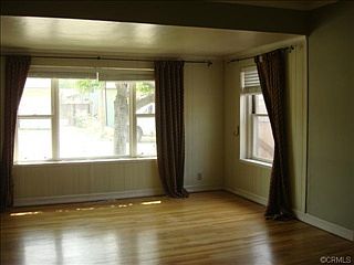 Enter this charming cottage into a spacious living room with hardwood floors and a dual glazed picture window looking on to the front yard. The covered side porch is easily accessed from the living room front door. The kitchen has bead board wainscoting, tile flooring, a small kitchen eating area, plenty of cabinets, stove and two wood windows above the sink overlooking the patio and backyard covered by a lovely Jacaranda tree. The full bath is conveniently located for the two carpeted bedrooms each with a ceiling fan. There is a bonus side yard on the north end of the property perfect for a vegetable garden or dog run. The garage is full sized with washer and dryer hookups.
