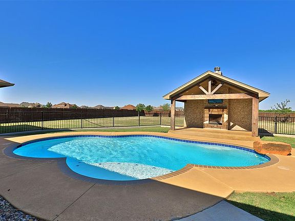 Just in time for warmer weather, this exquisite custom home is situated on a sprawling lot in desired Pack Saddle Creek. Entertainer's dream patio offers refreshing pool with baja shelf, full exterior bathroom & newly built pavilion & fireplace. Enjoy the game under the shade or cool off in the pool! Sectioned yards create safe play yard or dog run. Open concept living room has built-ins, focal point fireplace, natural light galore & flows to dining & kitchen complete with striking cabinetry, breakfast bar, prep island & modern appliances. Split design offers ultimate master privacy plus spa like en suite for relaxation. Second living room would make great gym, theater room or teen hangout! Welcome Home!