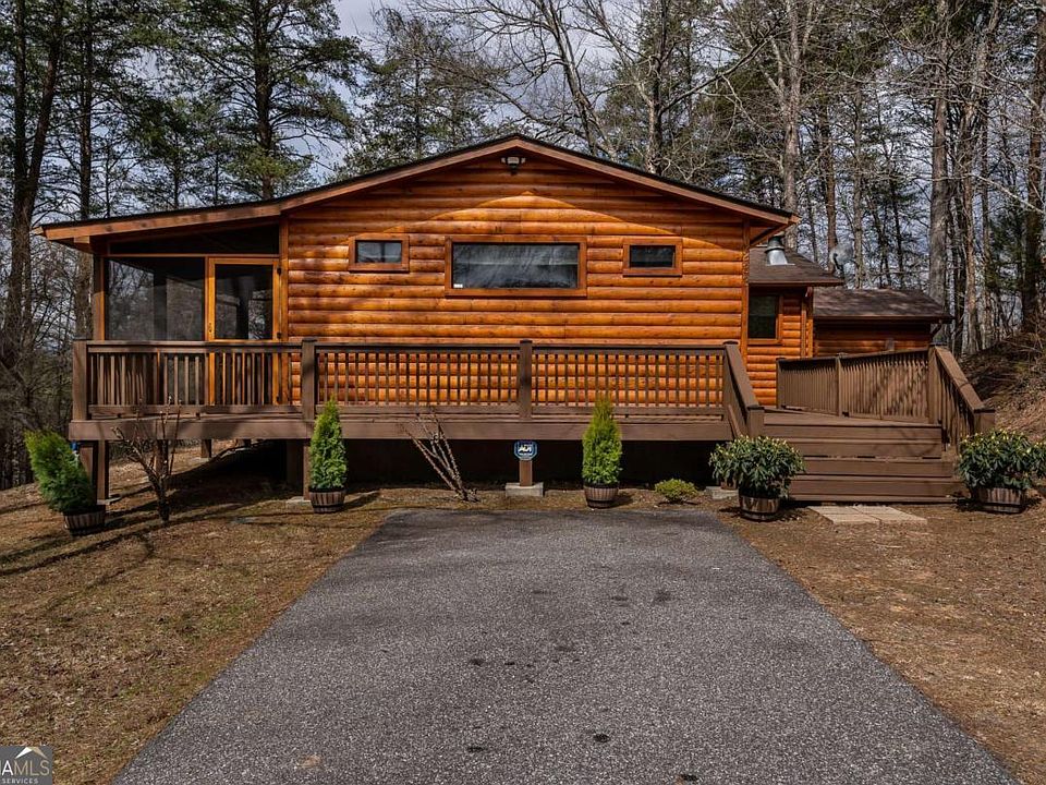 Walk to the Toccoa River, soak in the hot tub, or cozy up by the fireplaces-this furnished 2BR/2BA Mineral Bluff cabin + SummerHouse with fireplace has it all! Short Term Rental approved + priced to sell-just 2 minutes from Ron Henry Horseshoe Bend Park. Blending rustic character with modern comfort, this home is perfect as a weekend getaway, vacation rental, or full-time retreat. You'll be just 5 minutes from McCaysville/Copperhill's restaurants, shops, and entertainment, & 20 mins+- to the historic streets of downtown Blue Ridge. Inside: Warm and inviting hardwood floors + tongue & groove walls throughout; Light-filled open-concept living area with wood-burning fireplace; Spacious primary suite with room for a reading nook, Pilates mat or cozy daybed; Ensuite baths in both bedrooms for privacy and convenience. Outside: Expansive wraparound decks with mountain views and multiple spots for outdoor living space & entertaining. A unique screened-in summerhouse with TV and wood-burning fireplace-perfect for lounging, entertaining, or even extra sleeping space year-round. Covered hot tub oasis to relax after mountain adventures, fishing, or tubing on the Toccoa. Blue Ridge & McCaysville entertainment, shopping & dining are close by. Harrah's Casino in Murphy, NC is a quick drive. Plus, the Ocoee Whitewater River Rafting is approx 20 mins. Bonus: This cabin comes fully furnished-yes, even the float tubes-so you can start enjoying it from day one! With its unbeatable location, turnkey setup, and approval for short-term rentals, this is an opportunity that won't last long. Paved road access & ample parking! Schedule your showing today and start living the North Georgia mountain lifestyle! (May-Sept enjoy Pickin' in Horseshoe Bend Park every Thursday, 6:00 PM to dusk. Live music jams & pickin' on the banks of the Toccoa River. Free Admission.)