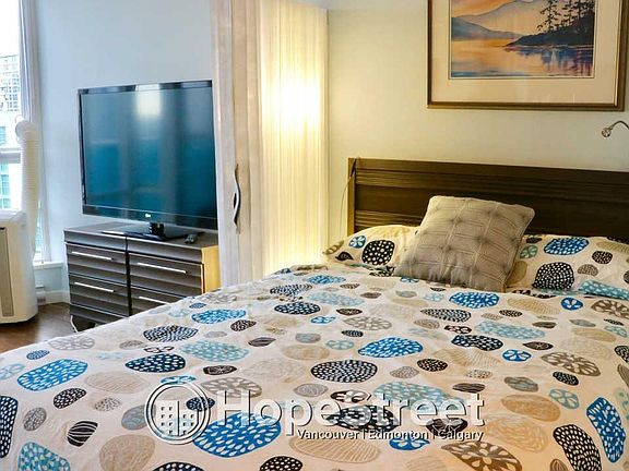 Bright open-concept studio in the heart of Downtown Vancouver with modern finishes, floor-to-ceiling windows, and a private balcony with stunning city views. Features in-suite laundry and a stylish 3-piece bathroom. Building amenities include a 24-hour concierge, gym, sauna, steam room, hot tub, party room, and theatre. Steps to shopping, dining, groceries, SkyTrain, bus routes, the Sea Wall, Yaletown, and Gastown. Walk Score: 98. Professionally managed by Hope Street. No smoking.