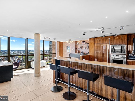 Exceptional residence spanning nearly 4,000ft2 on the 20th floor of Independence Place Condominium on Washington Square Park. Several units were gutted/combined and completely reimagined as this one-of-a-kind home. Floor to ceiling windows and three exposures (South/East/North) allow for incredible natural light and panoramic views. Flexible, open floor plan designed for both larger scale entertaining and more casual, everyday living. The most extraordinary features/finishes throughout, including venetian plaster walls, custom cabinetry, millwork, lacquered wood paneling, doors/trim, integrated lutron lighting system, and recessed baseboard detail. Gallery entry opens to custom kitchen w/ every conceivable amenity:counter seating for four, custom cabinetry, Wolf induction cooktop, paneled subzero refrigerator, metallic Walker Zanger tiled backsplash, breakfast area w/ built-in banquette, and separate office nook. Ktichen opens to dining and living spaces with South and East views, corner fireplace, and wet-bar/walk-in pantry area with under-counter wine storage and refrigerated drawers. Down the hall, two well proportioned bedrooms share a newer, contemporary hall bath. The over-the-top primary suite is outfit with custom furnishings to accentuate southern views, a second fireplace, and features two walk-in closet/dressing areas, two natural stone clad en suite bathrooms w/ steam shower, jetted tub and frameless glass enclosures, a separate lounge area, and an additional gym/studio space with sauna and kitchenette. Thoughtful laundry area w/ full size, side-by-side machines and custom cabinetry is cleverly hidden behind a sliding door system. Private terraces off the living space and primary suite. Remote controlled custom window treatments and Sonos audio throughout. No expense was spared, and every detail has been thoughtfully considered in design/construction. Residents of Independence Place enjoy 24-hour door staff and concierge, newly redesigned lobby, state-of-the-art fitness center, and on-site parking garage with direct lobby access (additional monthly fee). Close proximity to Philadelphia's premier dining, shopping, lifestyle and cultural institutions. Easy highway access into/out of the city.