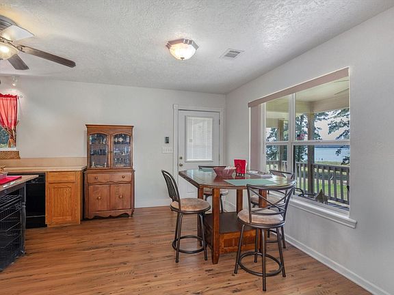 Enjoy peaceful river views from both levels of this elevated 2-bed, 2-bath home on .76 acres. Built in 2006 and perched on stilts, it features a covered patio below with a hot tub and space to entertain. The 1,200 sq ft interior includes a vaulted knotty pine ceiling in the living room and a screened porch perfect for drinking your morning coffee. A whole-house Generac generator offers peace of mind, while a 1,208 sq ft steel building comes equipped with water, 200-amp electrical, and an attached RV carport with a 50-amp hookup and drive-through access. The home's understructure includes a carport for 2–3 vehicles. With a nearby boat ramp and scenic water views, this home is ideal for river lovers seeking comfort, space, and functionality.