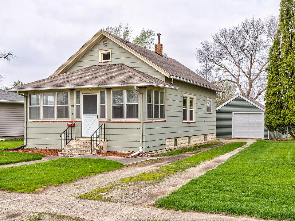 Never judge a book by it's cover! This ADORABLE 2BR, 1 bath bungalow has NEW siding, soffits and gutters scheduled to be professionally installed prior to closing. New exterior will PERFECTLY match your oversized 1-car garage (imagine the curb appeal!!). 233 S. Main Street is conveniently located directly across from Roland Story Middle School where you will enjoy easy access the open grassy park and all the charm that Roland has to offer. Walking into your new home, you will immediately be greeted by the charming, oversized front porch (just imagine summer nights spent out here!) which leads right into the spacious living area with hardwood floors. The newer windows and fresh paint throughout make this property exceptionally bright and airy. You'll appreciate the large closet in the spacious rear bedroom, which is adjacent to the full bathroom, and the shiplap style walls of the second bedroom (which would also make a great office or activity room). Your new kitchen showcases painted white cabinets and plenty of counter space. Off of the kitchen you'll find a cozy porch area which offers a pantry and a space that is ideal for a small table and chairs where you can enjoy the light streaming in from your spacious backyard with lush, green grass (perfect for summer barbecues and bonfires). The lower level of your new home, where you'll find the laundry area, is clean, freshly painted and offers lots of extra space for hobbies, exercise equipment or toys. 233 S. Main Street is ready for you to move on in and make it your own!