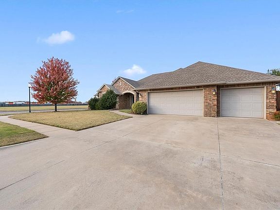 Discover this beautifully updated home in a desirable neighborhood with a peaceful pond view! Enjoy privacy on both sides with a wrought-iron fence that opens to serene water views. Inside features include crown molding, new vinyl plank and carpet flooring, a new shower, and a new HVAC (2023). The inviting living room offers a gas fireplace and custom cabinets, flowing into a formal dining area. The kitchen boasts granite countertops, double ovens, flat-top stove, microwave, dishwasher, and pantry. The spacious primary suite offers double vanities, a soaking tub, separate shower, and walk-in closet. A 3-car garage with ceiling and attic storage and bonus room, plus a large backyard storage shed and storm shelter, make this home the perfect blend of comfort, style, and functionality.