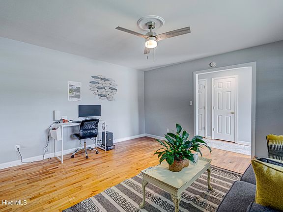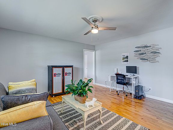 A classic rocking chair front porch invites you to slow down and stay awhile. Inside, the layout offers a comfortable balance of open gathering areas and private bedroom spaces. Natural light fills the living and den areas, creating a bright, welcoming atmosphere. The side-entry from the carport offers a convenient drop zone for beach gear or work bags, right next to the laundry area.