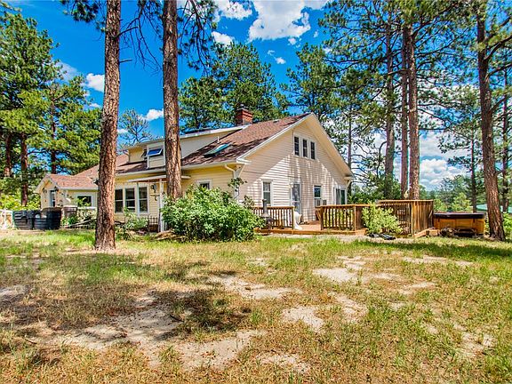 Live in peace and serenity! Country living at its best in the historic Larkspur area. This property is minutes to I-25 access, 15 minutes to Castle Rock and commutable to Denver or Colorado Springs. Unincorporated Douglas County. Zoned to operate a business out of your home or another building with 1 employee. 3.78 acres, part trees and part open. The main home was built between 1901 & 1904. Some of the many features include; original tongue and groove wood floors, saultio tile flooring done in the '70s. A chef's kitchen, it's spacious, a commercial refrigerator and stove, pantry, New Jersey yellow pine countertops and cabinets. Newer double pane and triple-pane windows, front & back door, asphalt. Master bedroom and bath are on the main level with its own deck, hot tub and outside shower. There's a wonderful tri-level guest house, other original buildings, animal sheds, tack room, 100 yd shooting range, 2018 Morton 3 bay garage. Roof on home was replaced in 2011. One of a kind!