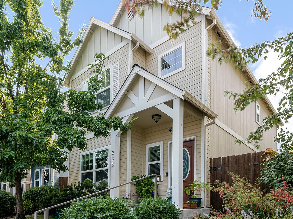 What a value price for this 1460 SF 3-bedroom 2.5 bath home in the quiet and conveniently located Clearview neighborhood of Talent. The home has all you need at an affordable price; upstairs bedroom with a vaulted primary with a large en-suite bathroom, and downstairs kitchen, office, living, and dining rooms. The open floor plan and large kitchen make it easy to cook and entertain while chatting with guests at the granite countertop bar. Nice extra features like a walk-in pantry, laundry room, and a covered walkway to a detached 2-car garage make this a real gem. A reasonable $104/ month HOA covers exterior landscaping in the front yards, which keeps the neighborhood looking sharp year-round.