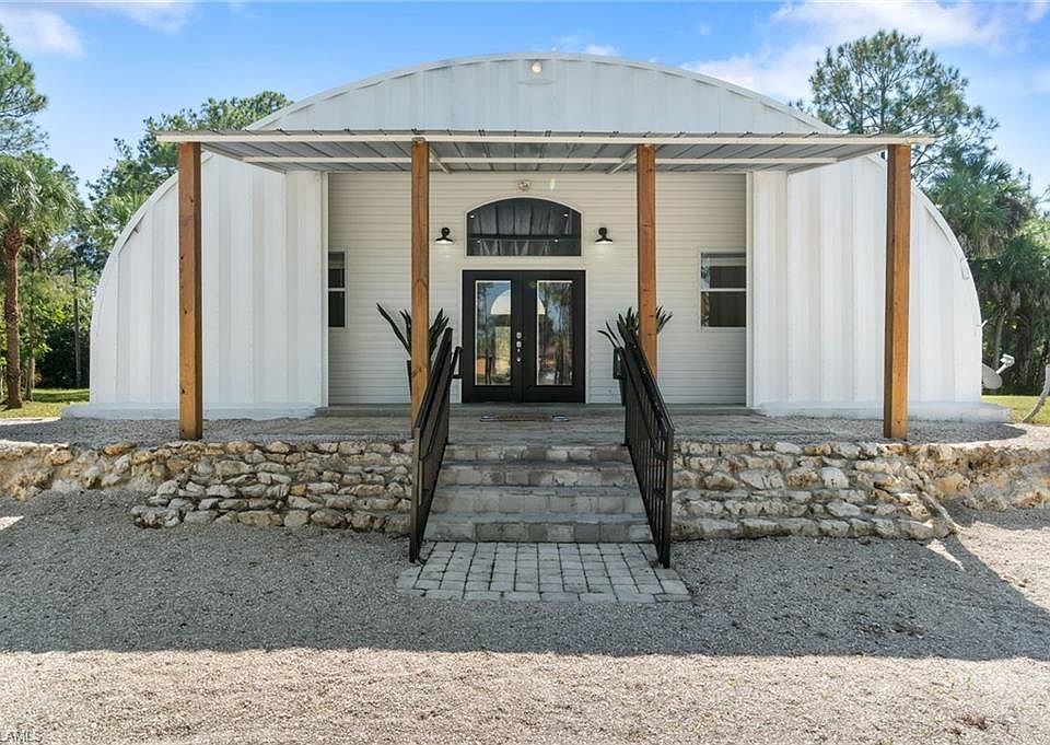 One of a Kind home on 2.92 Acres of Waterfront Land! With its soaring high ceilings and a beautiful spiral staircase leading to a cozy loft, the home offers a perfect blend of uniqueness and functionality. Tucked away on 2.92 acres at the end of a quiet dead-end street, you’ll love the peaceful canal views and stunning sunsets. Need more room? You have the option to purchase the buildable lot next door (MLS #224078231), giving you nearly 6 acres total! No HOA or restrictions here, so bring your animals, RVs, boats—whatever suits your lifestyle. Additional features include a barn with stables, a workshop/storage building, and a whole-home reverse osmosis filtration system. All this privacy, yet close to everything Naples has to offer—recently named the #1 place to live in the U.S.!