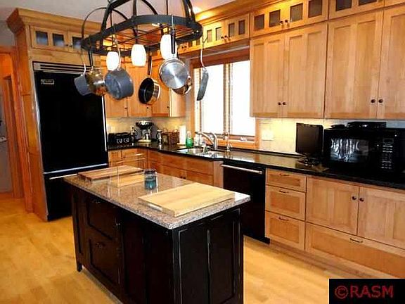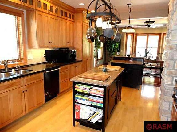 Impressive six bedroom, 4 bathroom home with approximately 6,000 square feet and is located on a half acre wooded lot in upper north Mankato. This custom built home has quality finishes including Brazilian cherry, and maple woods, Cambria countertops, ceramic tile, marble tile, brick accents, French doors, vaulted ceilings, gas fireplaces and a gourmet kitchen! The kitchen is a chefs paradise with Viking professional appliances, oversized island, and unique brick arch over the stove. The main level of the home has an executive office with built-in bookcases and wood beamed ceiling, a master suite complete with fireplace and large master bath, formal dining room, a striking living room with two sided gas fireplace shared with the den and its wood vaulted ceiling,1/2 bath, mud room (plumbed to have washer and dryer,) and spacious informal dining room is surrounded by windows bathing the room in natural sunlight. The upper level features 3 bedrooms and a full bathroom. The lower level is perfect for entertaining with its large living room complete with gas fireplace and wet bar. There is also a Rec/Exercise room that is wired for acoustic sound, two additional bedrooms and a 3/4 bathroom which accesses the laundry room. The property is complete with a large maintenance free deck, generous tree lined lot, and a triple garage that is heated and has access to the basement. Every aspect of this custom home is finished with a great attention to detail and will meet your every expectation.