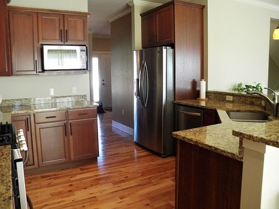 Three levels of living space adorn this beautiful home. Red birch flooring graces the first floor and the spacious kitchen is attractive with maple cabinets and granite counters. The 3 car garage has an epoxy finish and enters into a mud room with laundry. Owner's suite is large and light filled, with walk in closet and huge bathroom. A large deck and front porch allow wonderful outdoor enjoyment. The walk out lower level has a huge and comfort filled living area.