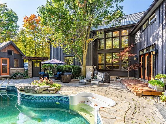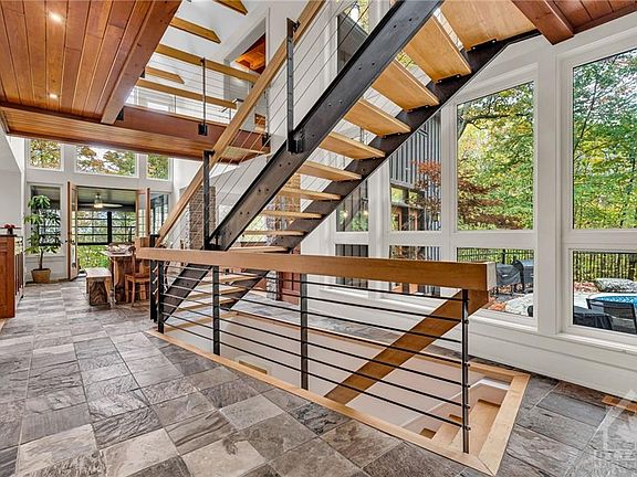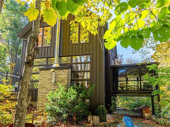 Experience life in the treetops in this jaw-dropping 4+1 bdrm custom home in sought-after French Hill, just 5 mins from Orleans! Flooded w/ natural light & poised perfectly atop an escarpment w/ breathtaking views from a 3-season sunrm, this unparalleled home is the epitome of intentional architecture. Meander flagstone pathways & find refuge in a spa-inspired backyard oasis w/ heated inground pool & outdoor shower, pool house w/wet bar & loft! Awake to untouched views from oversized windows; take in the timeless design of custom millwork & the expansiveness of soaring cathedral ceilings throughout. Recharge in an open-concept living space w/ new pellet stove & gather in your gourmet kitchen complete w/walk-in pantry, gas range, oversized fridge/freezer & double-dishwashers. A walkout lower level w/wine cellar, wet bar, rec space, wood stove & 5th bdrm complement your retreat lifestyle, and a heated detached 2-car garage w/ finished loft elevate your dreams!