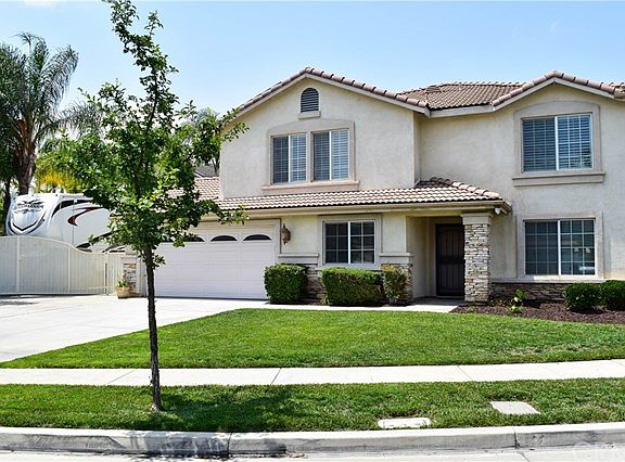 **BEAUTIFUL CORNER LOT POOL HOME** This home offers 3758 sqft of living space complete with 6 bedrooms and 4.5 bathrooms. One full bedroom and recently remodeled bathroom on first floor with another 1/2 bathroom downstairs. Large kitchen with center island, new counter tops, includes stainless steel appliances and walk in pantry. The spacious kitchen opens to a giant great room with fireplace. Large formal dining room, living room and laundry room complete the first floor. Second floor includes a large master suite with a huge master bathroom and walk in closet (all bedrooms have walk in closets). 4 Additional bedrooms on the second floor, one with it's own private full bathroom. Crown molding, baseboards, and Plantation shutters on windows throughout the house. Sits on a 13000sqft corner lot on a cul de sac. The backyard offers pool/spa, gas fire pit, covered built in BBQ with wet bar as well as a large patio cover off the back of the house. 2 car garage and 42â gated RV parking. This house has it all!!