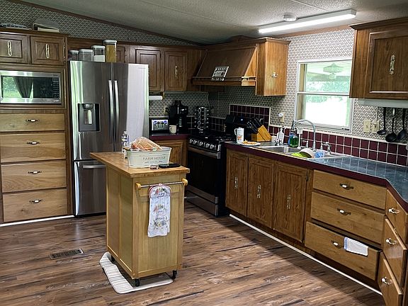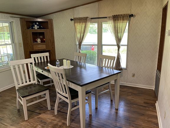 This 3 BR 2BA home sits on some of the prettiest land on Dog Branch Rd. Home incl new gas stove, microwave. Temporary island in kitchen w/power outlet underneath, & all new flooring. Gas fire place-not hooked up. It has a shop that offers living quarters that is connected to the home with an awning. Incl in shop stove, refrig, & furniture. Most of the 4.9 acres are flat with a nice creek in the back. A nice country style back porch for relaxing & admiring nature at it's best watching the wildlife: Deer, Turkeys, Birds, etc. 4 Utility Sheds, 1 w/electricity & refrig, 2 car carport. Tin roof. Seller's Home inspection exhibits a great report . Contracts w/Chiles Propane & Cook's Pest Ctrl. Property is selling "AS IS". No exceptions.