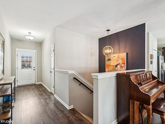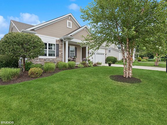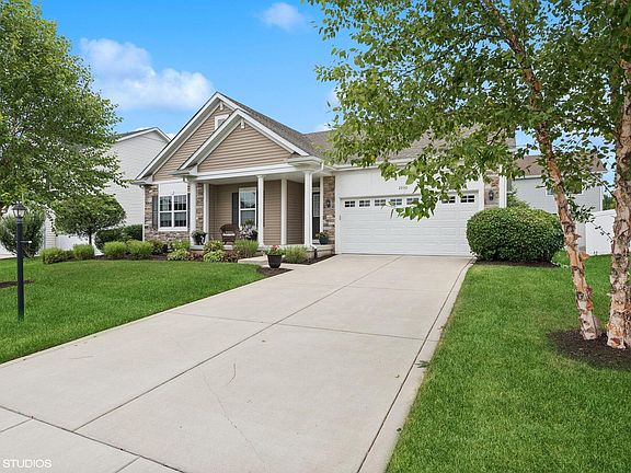 WELCOME HOME! Your home search is over! This stunning ranch is located in Morgan's Corner near the nature trails of Coffee Creek. This open concept 3 BR 2 BA ADA compliant floor plan boasts 9' ceilings throughout and is perfect for efficient living and entertaining. The great room flows seamlessly to the well appointed kitchen with large island with prepping sink, quartz countertops, 42" cabinets and subway tile backsplash, Dining area has sliders that open to the patio and backyard with new landscaping. The primary bedroom features an updated ensuite bath with a walk-in shower, double sinks and an organized closet. The laundry room with built-ins and is conveniently located near the primary bedroom and garage. Bedrooms 2 and 3 are on the other side with an updated full hall bath. Bedroom 3 is being used as an office. All new lighting throughout keeps this home on trend. The open staircase leads to unfinished basement with shelving for storage. Bring your ideas to give this space your personal stamp and add equity to this dream home. The 2 car garage has a ramp for ease to enter home. Easy access to Toll Rd & I94. Just 50 minutes from Chicago.