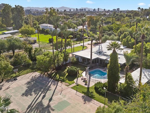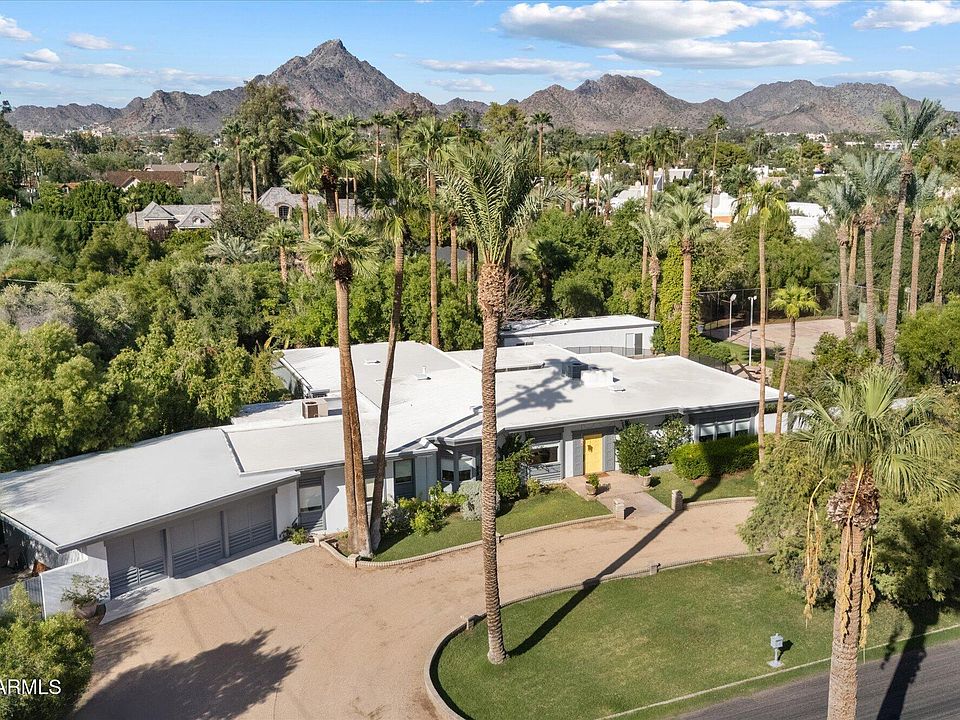 Originally designed in 1945 by renowned architect Bert M. Thorud, the former Head Engineer of the 1940's NY World Fair, this residence stands as a testament to enduring design and craftsmanship. The home effortlessly blends classic style with eclectic charm—an architectural treasure that invites both admiration and imagination. Embrace the ideal opportunity to enjoy the home in its current state, or reimagine it as your own private haven. Set within the prestigious Bartlett Estates with NO HOA & near the iconic Biltmore Hotel, the property spans 1.3 acres of lush grounds, offering a rare balance of country serenity and city convenience. Mature trees & verdant lawns surround the pool and private tennis court, creating a private oasis for leisure and entertaining. Steeped in heritage yet rich with potential, this rare estate invites your vision to flourish. The 4,599 sf main residence showcases an expansive floorplan, highlighting the 9 ft. ceilings & clerestory windows that fill the home with natural light. A curated mix of George Nelson 1960s vintage lighting and Vanini chandeliers and sconces enhance the home's distinct personality and warmth. The 800 sq. ft. guest residence comes complete with a great room, full kitchen, 1 bedroom & 1.5 bathsperfect for guests, extended family, rental income or a creative studio retreat. Experience an unrivaled location just steps from the upscale Biltmore Fashion Park, fine dining, designer shops, vibrant nightlife & renowned golf. Minutes away, the Arizona Biltmore Resort elevated by a multi-million-dollar transformation boasts world-class amenities and an iconic ambiance. This is a once-in-a-generation opportunity to own an architectural original ready to be enjoyed in its classic splendor, or transformed with your own modern day vision. Rich in heritage and endless in potential, this rare estate offers a canvas for those who appreciate the intersection of history, artistry, and imagination. Seize this rare opportunity to own a legacy property in the heart of Biltmore.