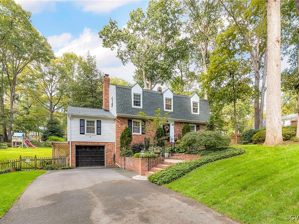 Welcome to 2330 Fillmore Circle, a stunning Dutch Colonial brick house located in the highly desirable Bon Air neighborhood, offering prime access to shopping, dining, & local amenities. This home features an asphalt dimensional shingle roof, brick, newly replaced vinyl siding, & beautifully, mature landscaped front & back yards. The front entrance welcomes you with terraced brick steps leading to a slate porch landing, surrounded by lush greenery. Inside, the main floor showcases gorgeous hardwood floors throughout. The fully renovated kitchen boasts custom cabinetry, a large granite island, stainless steel appliances, dedicated coffee bar & built-in wine bar, quartz countertops, a custom hood range, & recessed, dimmable lighting for ambiance. The kitchen flows into a bright breakfast room, perfect for entertaining, with custom built-ins. French doors from kitchen opening to a spacious back deck with vinyl railings. An elegant dining room features a gas fireplace & chandelier. A lovely living room has a gas fireplace, French doors to the deck, new LVP flooring, & abundant natural light. The replaced windows throughout the home give efficiency throughout. Upstairs, the home features four spacious bedrooms, all with hardwood floors. The primary suite includes twin closets & an updated en-suite bathroom with tiled shower with a seat, heated floors, a heated towel rack, & a new vanity. The additional bedrooms have built-ins, ceiling fans, & share an updated hall bath. A finished basement with a lovely family room offering a wood-burning fireplace. An updated half bath, a large laundry/utility room, & access to the one-car garage finish the basement. A covered area under the deck provides convenient storage for lawn equipment. The fenced backyard is filled with mature landscaping, patio bbq area & additional garden sitting area. This home has all the beauty & charm with amazing updates, offering comfortable living & outdoor spaces perfect for entertaining. Don’t miss out on this gem in the heart of Bon Air!