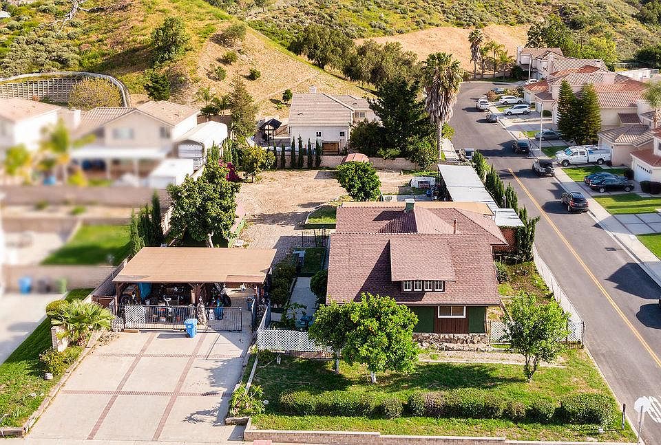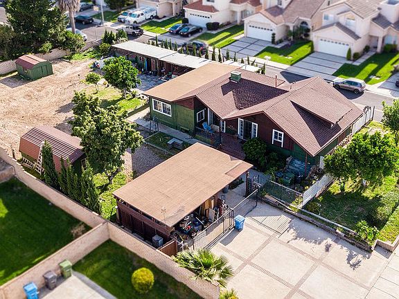 What great opportunity! This farm house built in 1920 sits on an expansive 20,000+ square foot flat corner lot with several orange trees. Zoning for the lot possibly allows for 3 homes (buyer to confirm). The concrete and brick trimmed driveway leads to 2 large carports situated behind wrought iron gates. Wide brick steps lead you to the porch and entry to the living room through a wide French door with side panels. The living room has lots of natural light and wet bar with storage cabinets. A walk-in closet and attached bath are features of the master bedroom. Oak cabinetry, granite counters and a corner sinks appoint the kitchen. There is an open dining area and room for possible formal dining room. A step down area with a French door opens to an expansive open patio which also features a long covered patio and an above ground spa. The home is sold as-is with no warranties.