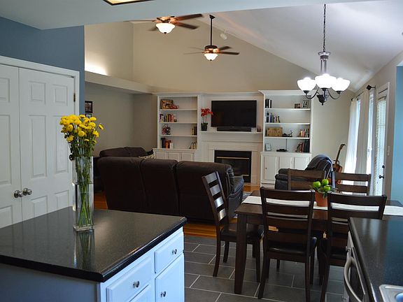 Gorgeous ranch home in desirable Harrods Point Neighborhood! Awesome open floor plan! Family room features a beautiful fireplace, built-in shelves, vaulted ceiling with two ceiling fans, tons of natural light, and gorgeous hardwood floors. Family room is open to large kitchen with lots of cabinets, island, stainless steel range and dishwasher, nice pantry, and beautiful tile flooring! Large master bedroom with vaulted ceiling and ceiling fan, large window with built-in bench, and walk-in closet. Master bath has extra large vanity and a skylight to provide plenty of natural lighting! Two additional bedrooms with nice size closets. Absolutely amazing fenced backyard with awesome deck (painted with high quality non-skid deck paint) and storage shed. Furnace 1 year old and AC is 4 years old! All windows were replaced in 2014!