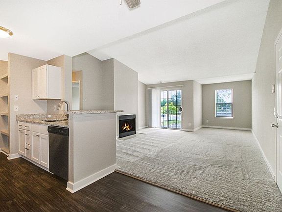 Located on the first floor and second floor. this apartment features a large living room, designated dining room with wood grain vinyl with an open concept kitchen with all appliances. In unit laundry, walk- in closet and have their own patio or balcony and the second floors feature a wood burning fire place.