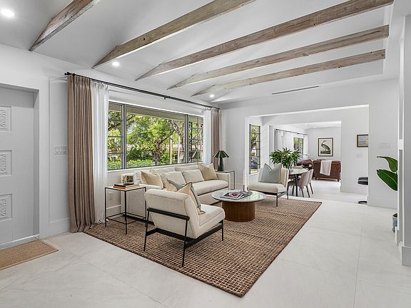 Presenting 2330 Lake Avenue, a home that offers both timeless historic charm and the peace of mind of all-new construction. Reimagined in 2025 by award-winning Flamingo Park Development, this single-story showpiece has been fully transformed while honoring the character of one of West Palm Beach's most beloved neighborhoods.Behind its classic facade lies a brand-new addition, resort-style pool, and design-forward interiors featuring 4 bedrooms and 3.5 bathrooms. With a brand new roof, brand new impact windows and doors, brand new pool, and completely updated systems, this home is ready to begin its next chapter. Oversized 4' x 4' porcelain tile flooring sets the tone for the custom interior, where exposed ceiling beams, solid core wood doors, and clean-lined trim elevate the space. At the heart of the home is a dramatic dual-sided electric fireplace clad in quartz flagstone mosaic, accompanied by living room built-ins, accent lighting, and a 300-year-old reclaimed wood beam mantel. With both a formal living room and a separate family room, the home offers flexible living that adapts to your lifestyle.