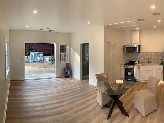 Be the first tenant in this newly remodeled, fully detached back house/ADU/studio apartment in the large backyard of a single family home located in west Los Angeles. Beautiful shower, hardwood floor, full kitchen, built in ceiling speakers, large frameless glass shower, central air conditioning and heating, in unit washer/dryer, high ceilings, and large windows with great light. Large French doors also open onto shared outdoor grass area, and second door helps to maximize extraordinary light. Keypad secured entrance to backyard. Separate address for mail. Walking distance to various restaurants and bars, including Apple Pan, John O'Groats, Stalking Horse, the Six, three banks blocks away, Westside Pavilion where Google is going in, Starbucks, and much more. Also a great quiet location can double as your home office for working from home during the pandemic. Short walk to bus stop and metro rail. Permitted parking on street available. Reasonable utility costs. Internet included. Located between Pico and Olympic and between Overland and Beverly Glen.