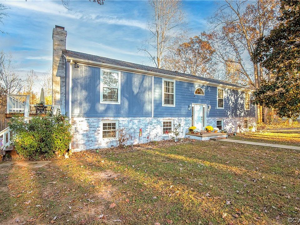 Welcome home to 2330 Mosby Road! This beautiful transitional style home offers 3 bedrooms, 2 bathrooms, a basement, spacious eat-in kitchen, formal dining room, living room, and expansive deck - all situated on 9.10 acres. You'll love the hardwoods on the main level and the fresh paint through most of the home. The home also features a new roof and new siding. The eat-in kitchen offers corian countertops, tile backsplash, stainless steel fridge, large center island, lots of cabinets, and access to the large deck. The primary bedroom offers a large ensuite bath and access to the deck making it the ultimate suite for relaxation. Both bathrooms on the main level have been completely remodeled. The basement is partially finished, with a wood stove, and the capability of adding additional rooms/ bedrooms. You won't want to miss the opportunity to own this beautiful home and property in Powhatan! Schedule to see it today!