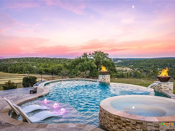 Built by Vintage Estates Luxury Home Builder, this stunning Hill Country retreat captures breathtaking panoramic views of the 4,000+ acre Stahlman Ranch from its secluded cul-de-sac in the prestigious Canyon Ranch gated section of Vintage Oaks. Set on over an acre, this 4,255-square-foot masterpiece blends timeless craftsmanship with modern innovation. Behind custom 8-foot iron entry doors, you’ll find a sophisticated open layout featuring whole-house tile flooring, custom alder cabinetry, and designer touches throughout. The gourmet kitchen is a showpiece with enormous double granite islands, Thermador and Bosch appliances, double ovens, reverse osmosis system, and professional-grade vent hood—perfect for both everyday living and entertaining.