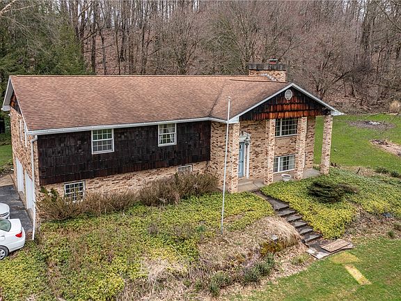 4-bed/2.5-bath raised ranch situated on over 26 acres of picturesque land, offering unparalleled potential and breathtaking views. FREE GAS, gas well located on the property, and royalties. As you enter the front door, descend to the lower level featuring a spacious family room with a wood-burning fireplace, perfect for cozy gatherings. The double doors lead out to the backyard. Additionally, the lower level boasts a convenient half bath, a dry bar (plumbed for a kitchenette), a bedroom, the laundry room, and direct access to the 2-car garage. Ascending to the upper level, you'll find gorgeous hardwood floors gracing the living/dining room. The kitchen offers easy access to a sizable deck, ideal for entertaining. 3 generously sized bedrooms, 2 full bathrooms ensure convenience for the entire household. Outside, a substantial pole building awaits, providing ample storage space for all your outdoor equipment and recreational gear. The possibilities are endless on this expansive property.