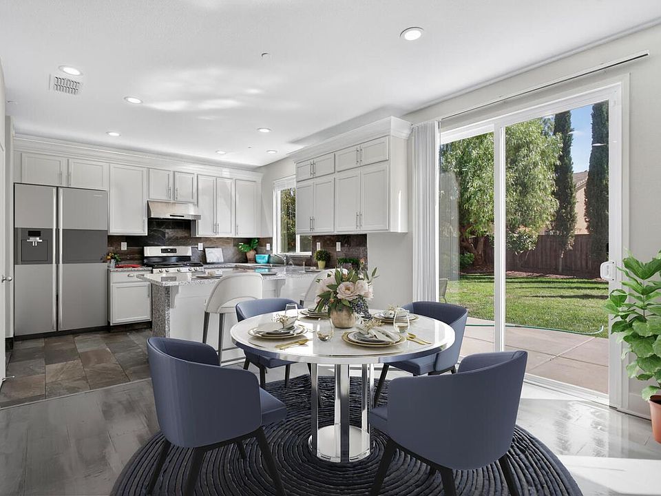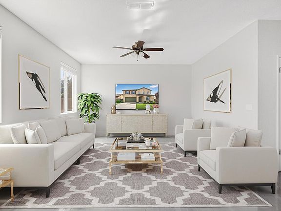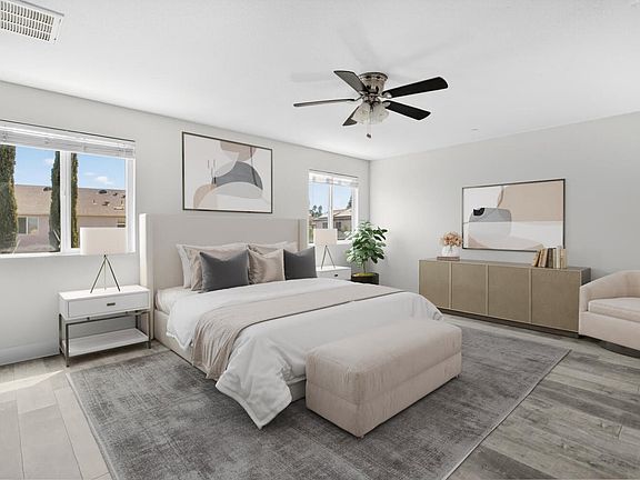 Fall in love, truly a rare and stunning 5 Bd 3 Ba home, nestled on a peaceful, highly desirable cul-de-sac. The moment you step inside, you'll be captivated by the open-concept main level, where soaring 9-foot ceilings and gorgeous red oak hardwood floors create an immediate sense of grandeur. The kitchen features elegant new granite countertops and a massive 33 in farmhouse sink. The must have island makes it the perfect hub for gathering friends and family. The massive master suite is a luxurious retreat with an enormous walk-in closet, while the entire second floor and stairs are finished with new waterproof laminate flooring. The master and hall baths feature new defogging mirrors. A downstairs bedroom offers a perfect, private space for guests or multi-generational living. Every corner is bathed in light from 32 brand-new LED lights, and new 5.5-inch baseboards add a final touch of polish. Step outside to your private, low-maintenance oasis. The backyard features a French drainage system and a treasure trove of mature citrus and peach trees, providing fresh fruit all year long. Just walk n turn the corner to the award-winning Peyton Elementary n Middle schools n the community park. Easy access to FWY 99, 4, and 5. Plus, nearby Costco, Walmart, Lowes, Home Depot n many more