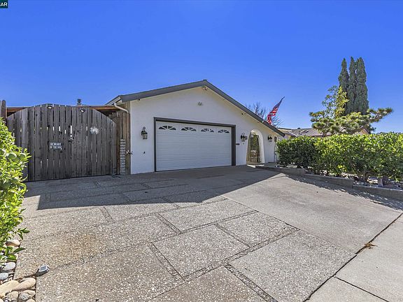 Your hidden oasis has been found! A stunning & turnkey home awaits you in this 4 BR, 2 BA, single level detached home w/ 1695 sqft on 0.19 acres. From the front door, you are greeted by a garden sanctuary that leads you into the open concept DR/LR/eat-in kitchen that all overlook the family room. Vaulted ceilings & laminate flooring carry throughout the common area & the gorgeous kitchen invites the family chef over for a visit. Granite counters, SS appliances, breakfast seating & a gas range are all the perks of this kitchen. The stone-surround fireplace centers the family room & you can envision large gatherings here. Down the hall you have the updated guest BA & 3 guest bedrooms w/ closets that would make an organizer's dream. The primary suite offers the grandeur of vaulted ceilings & overlooks the backyard sanctuary. The updated ensuite primary BA has been given a refresh w/ a newer vanity & offers walk-in shower stall. But outside is the real treasure. Above ground jetted hot tub, shower station & gorgeous swimming pool are all flanked by beautiful views of Mt. Diablo. The outdoor patio is the perfect spot to host gatherings year round. This home has it all. Centrally located & the perfect spot for a family. Come & see all this home has to offer!