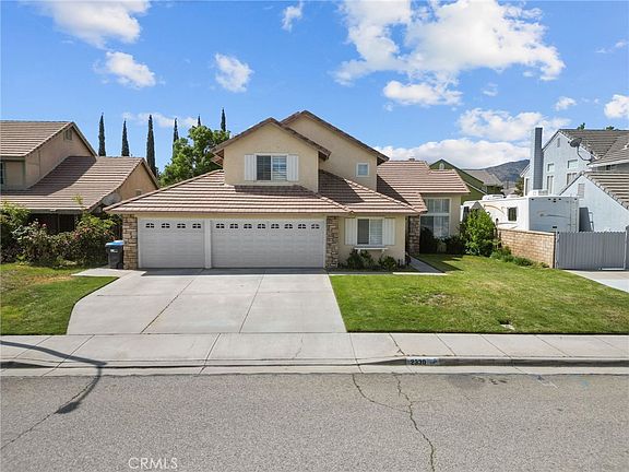 This stunning West Palmdale home offers a perfect blend of comfort, style, and entertainment-ready spaces—highlighted by a sparkling in-ground pool. Enter through double doors into formal living and dining areas featuring soaring vaulted ceilings, plantation shutters and peaceful views of the backyard. The kitchen is beautifully appointed with granite countertops, a breakfast bar, and a cozy dining nook, and it flows seamlessly into the spacious family room with a custom entertainment center, fireplace, and more backyard views. Downstairs includes a full bedroom and bathroom, an indoor laundry room, and a versatile bonus room—perfect for a home office, gym, or playroom. Upstairs, the expansive primary suite features vaulted ceilings, plantation shutters, double-door entry, two large closets, and a luxurious en-suite bathroom with dual sinks, a walk-in shower, and a separate soaking tub. The backyard is an entertainer’s dream with a sparkling pool, cozy fire pit, and a covered patio—all surrounded by block wall fencing for privacy. A 3-car garage provides ample parking and storage.