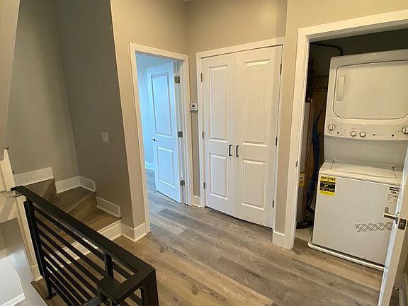 The custom kitchen is a chef's dream, featuring modern cabinetry and high-quality stainless steel appliances. Plus, the convenience of an in-unit washer and dryer makes laundry day a breeze.