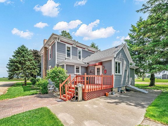 Step into the charm of this beautiful 5 bedroom, 1 bathroom American 4-square home, nestled just a 1/4 mile east of Serena. This stunning property boasts a prime location near schools and the local fire department. The home's farmhouse style exudes warmth and character, enhanced by its updated windows and modern touches. The 3-car detached garage provides ample space for parking and storage, while the screened-in building offers additional storage and relaxation areas. The man cave, complete with heat and electric baseboard heating, is the perfect retreat for movie nights or game days. The beautifully landscaped yard features a stunning redwood deck off the kitchen, perfect for outdoor dining or entertaining. The updated kitchen boasts granite countertops, adding a touch of sophistication to the home's classic charm. The property has been recently painted and meticulously maintained, with hardwood floors throughout the home. A full masonry electric fireplace adds a cozy touch to the living area, while the downstairs bedroom can be used as a den or office. This exceptional property is a true gem, offering a perfect blend of charm, functionality, and modern convenience. Don't miss this opportunity to make it your dream home!