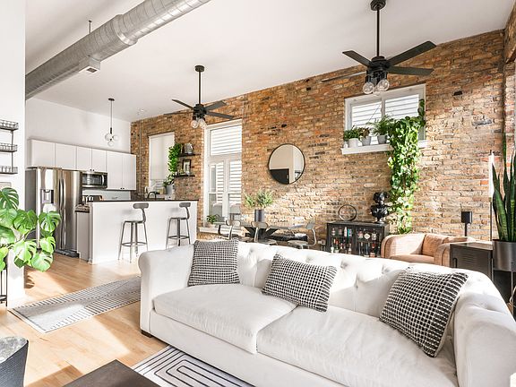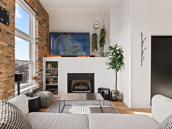 Luxury meets urban chic in this gorgeous, recently renovated Roscoe Village condo! Walk in to find soaring 12' ceilings showcasing new remote-operated ceiling fans, and new modern lighting fixtures. East and south facing windows provide the unit with a ton of natural light, the south facing windows include new automated (iPhone-enabled) roller shades. The exposed brick and gas fireplace give a charming-city loft feel, and the private elevator entrance allows for ease and convenience with a touch of luxury. Enjoy some fresh air on the front balcony, and entertain guests on an additional balcony off of the primary suite. The kitchen features all newer appliances, and both bathrooms were recently updated with new toilets, and faucets. Interior door locks were recently updated to a self-keying system including programmable smart deadbolt on front door. Ring security system on all interior/exterior doors & windows, as well as interior motion detection monitors. Tandem parking and additional storage unit included, welcome to your happy place!