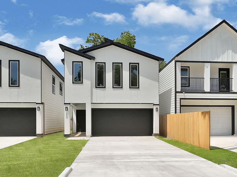 Introducing a stunning new construction in Houston’s rapidly growing Acres Homes community—never lived in and thoughtfully designed for modern living. This contemporary 3-bed, 2.5-bath home offers 1,839 sq. ft. of open-concept space with 9' ceilings and sleek finishes throughout. The heart of the home is the gourmet kitchen, featuring a striking waterfall island, deep farmhouse sink, pendant lighting, and ample counter space for cooking and entertaining. The living area is anchored by a chic electric fireplace, perfect for cozy nights in. Upstairs, the spacious primary provides a serene retreat with spa-like en-suite bath complete with floating dual-sink vanity, garden tub, frameless tile shower, and walk-in closet.Outside,a stylish blend of stucco and Hardie elevates the curb appeal, while the large backyard and 2-car garage offer functionality and outdoor relaxation. Ideally located just minutes from The Heights and Downtown, with quick access to shopping, dining, and major freeways.
