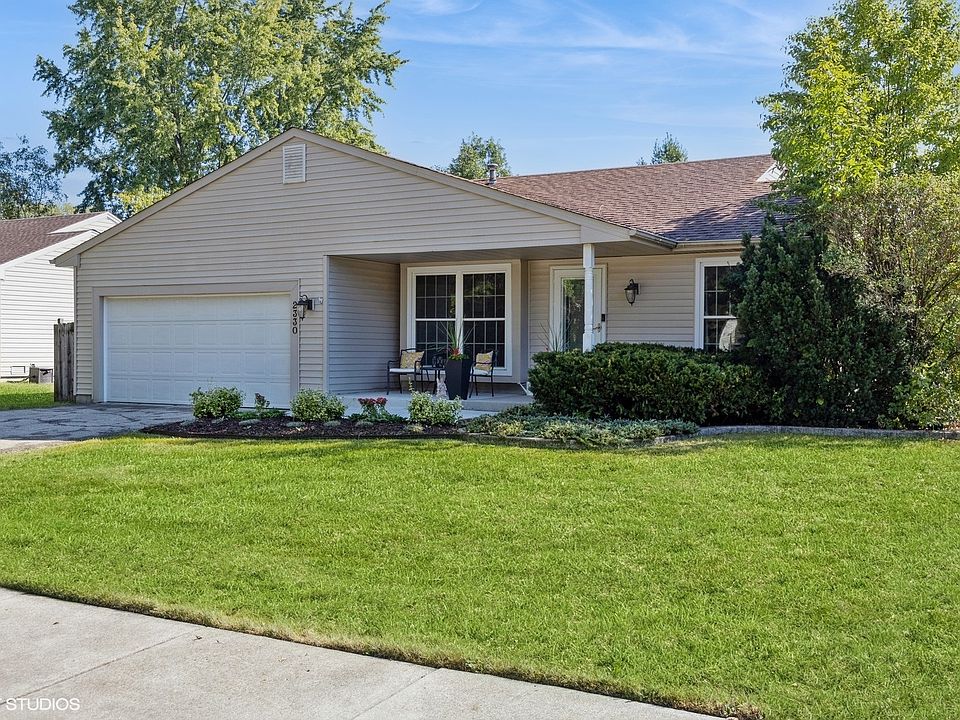 Ranch Home on a gorgeous tree lined street, corner lot, , NAPERVILLE- District 203 Schools- walk to Kingsley Elementary school. Hardwood flooring, vaulted Ceilings in the living room, bright and spacious. Eat in Kitchen with 42" cabinets, Samsung SS appliances. Master Bedroom with Walk-in closet and bathroom and full bathroom. Laundry easily accessible, attached garage, two additional bedrooms, large family room filled with sunlight. Inviting porch area, great for relaxing. Beautiful lot Fenced and a large patio for entertaining.