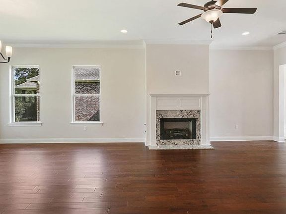 The Franklin floorplan is a spacious single story home featuring 4 bedrooms, 2.5 baths and just over 2300 square feet of living space! Beautifulhardwood flooring throughout the foyer, dining, living and kitchen. The large open great room is centered around the gas log fireplace with granitesurround and has views to the covered patio and backyard with golf course views! The gourmet kitchen features custom painted cabinetry with 5"hardware pulls, stainless steel appliances including 5 burner gas cooktop, built in microwave and single wall oven, 3 cm Moonlite granite, white subwaytile herringbone pattern backsplash, chrome plumbing and brushed nickel lighting fixtures, 2 pendant lights over the large center island and a walk inpantry. Large master suite with spa like bath featuring a stand alone shower, separate soaking tub with 3 cm granite surround, his and her vanities,separate water closet, custom framed mirrors, and huge walk in closet. There are 3 additional bedrooms all with nice size walk in closets, a full bath,powder room and large laundry room with single laundry wall cabinet. *Pictures are not of the actual home but are of the same floorplan, colors and options may vary.