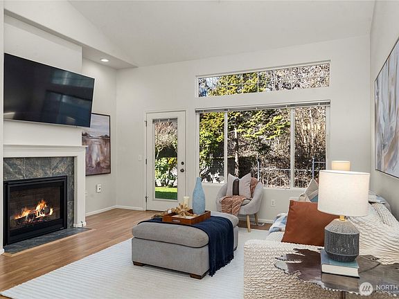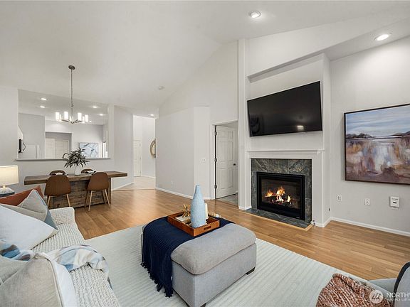 Welcome home to your beautiful, light-filled, SINGLE STORY home in coveted Marina Pointe! At just under 1,200 sq ft and with a 2 car garage this layout is one of the most sought after in the neighborhood. Vaulted ceilings in the main living space and primary suite make this home feel spacious while the fully updated gas fireplace and private back patio with no neighbors behind keeps the space feeling cozy and warm. A huge kitchen with space for breakfast nook or bar & two updated bathrooms make this one hard to beat! From the very quiet, private greenbelt back patio you have views of Ruby Lake and you are so close to walking trails, golf and shopping. Marina Pointe is it's own little hideaway conveniently close to everything you need!