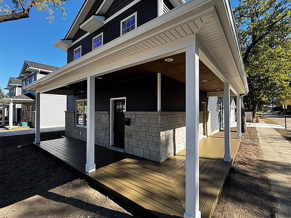 Get ready for the most beautiful home in Hazel Park! This stunning property has it all—located just north of Nine Mile on the Ferndale side. Upon arrival, you’ll be captivated by tall, stately columns and a massive fully covered wrap-around porch with wainscoted ceilings, dimmable lighting, and a remote ceiling fan. The exquisite stone backdrop creates the perfect setting for relaxing year-round. Step inside to find soaring 9’ ceilings with recessed lighting throughout the first floor. Sunlight fills the spacious living room, flowing seamlessly into the dining area and a gorgeous eat-in kitchen island—ideal for morning coffee or entertaining guests. The kitchen boasts stainless steel appliances, white shaker-style soft-close cabinets with matte black pulls, quartz countertops, and a brilliant glass subway tile backsplash. Slide past the kitchen's back door wall to access a charming butler’s pantry accented by a rustic barn door and transom window—perfect for growing herbs. Down the hallway, find a 60” built-in storage closet, with built-ins, a guest powder room, and a side mudroom with another beautiful barn door just across the hall to dress the utility closet. Upstairs, the luxurious primary suite includes a fully tiled walk-in shower with bench seating, a mosaic niche, dual vanities, and a huge walk-in closet. Bedrooms 2 and 3 share a full bath, with Bedroom 2 also featuring its own walk-in closet. Convenient second-floor laundry eliminates hauling clothes up and down stairs. Outside, enjoy a spacious 22’x16’ back patio, a large yard, and a 22’x22’ garage with electric, side entry, and opener. This home was built with love, style, and every modern convenience—ready for you to make it your own!