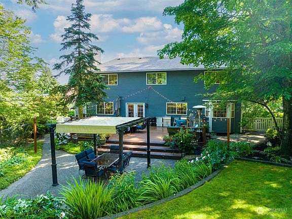 Stunning Bothell home with backyard oasis! Incredible curb appeal and pride of ownership provide a beautiful frame to this home. Soaring ceilings in the living room welcome you in and flow through the dining room to the stylish, updated kitchen. French doors open up to an entertainers dream back yard! Relax or have a fun get together on the huge deck & patio surrounded by lush landscaping! Upstairs you'll find a remodeled owners suite with a huge walk-in closet and spa inspired bath, complete with a jetted soaking tub, floating dual vanity and double shower. Rare, oversized 3 car garage, paver driveway and path, serene front yard water feature and easy freeway access round out this amazing home. Short commute to local top employers!