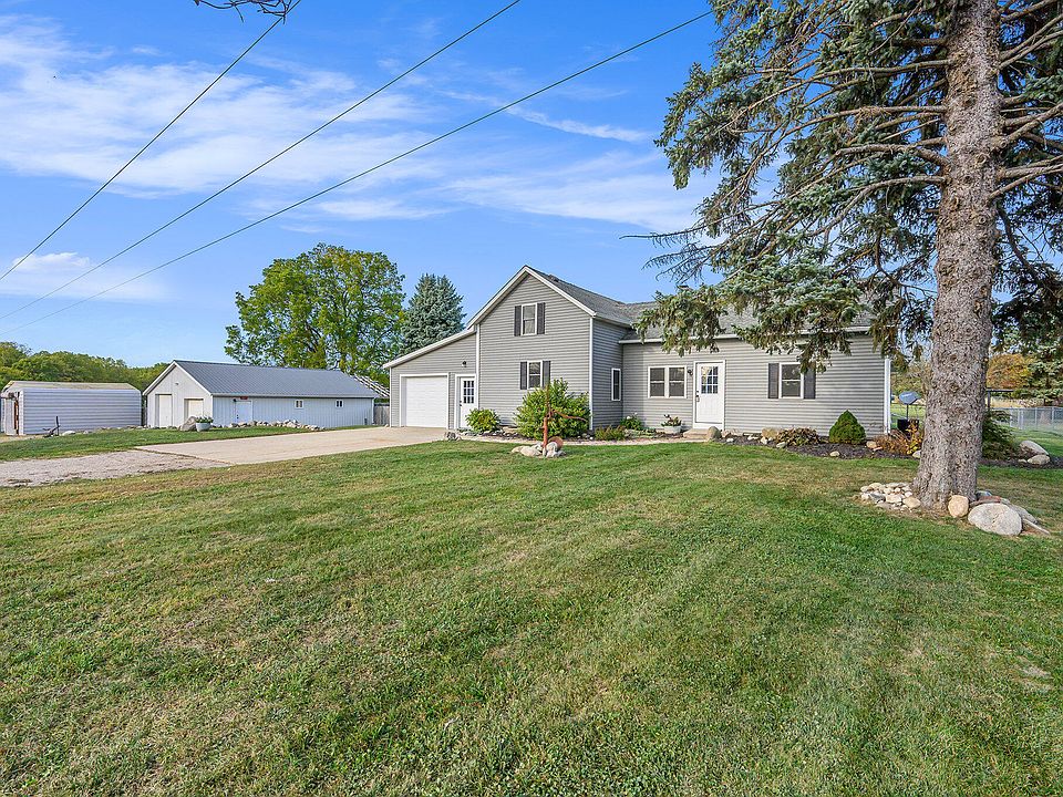 So if you are from the area you know the story on this one. Just over a year ago this home was getting ready to go on the market when a small explosion on Labor Day weekend did some damage. The insurance company decided to contract with VanDam and Kruisenga to have the place completely restored and corrected. So for the last year it has been stripped down and built back up. It has new electrical, new furnace, new kitchen appliances, new drywall, new windows, new siding, all new kitchen & baths. About the only things that werent replaced were the roof (was newer and not damaged) and the AC unit that still worked fine. This home has 3 bedrooms and 2 full baths along with a 4th room that could be an office or nursery as it has no closet so isnt counted as a bedroom. It has a one car garage and 32 x 40 pole barn along with a second smaller barn/large storage unit. It all comes on 2 1/2 acres of great property with a fenced in backyard and 2 basements. The old basement has one staircase and the newer basement is fully under the whole addition that was done years ago and has its own staircase. You are basically getting a new house with acreage and a pole barn for less than it would have cost to build it.