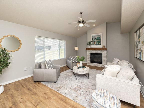Welcome to this beautifully updated two-story home, offering 3 spacious bedrooms and 3 bathrooms. As you step inside, you're greeted by an inviting entry with LVP flooring throughout the main floor, setting the tone for the stylish updates that follow. The versatile dining room/office area is perfect for work or casual dining. The kitchen is a beautiful, featuring freshly painted cabinets, stainless steel appliances, a pantry, and an eat-in area. It seamlessly opens into the large family room, complete with a stone-surround fireplace, a wood mantle, and soaring vaulted ceilings, creating a warm and welcoming space. Upstairs, you'll find three generously sized bedrooms, including the primary suite, which offers a private on-suite bathroom and a spacious walk-in closet. The second floor also features new carpet throughout, and the spare bedrooms have been freshly repainted for a clean, modern feel. The convenient second-floor laundry room adds to the home's functionality. The finished lower level provides a fantastic rec room, offering additional living space and potential for a 4th bedroom if desired. The expansive backyard is perfect for outdoor entertaining, with a newly poured patio that enhances the space. Plus, the driveway has been recently replaced for added curb appeal. This home has been thoughtfully updated and is ready for you to move in and make it your own! Don't miss out on the opportunity to own this stunning property.