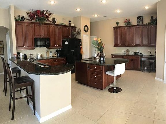 Gorgeous Nohl Crest home located in the highly sought out Cameron's Point enclave of Fox Wood @ Trinity! It is nestled on a premium lot of over 1/4 acre. This well maintained 4 bedroom, 3 bath pool home is ideal for entertaining. Open floor plan features upgrades galore. Block construction was cement filled as an extra feature in this custom home, to help with energy, soundproofing, etc. Granite kitchen counter tops, 42" cherry wood cabinets with plenty of pull out drawers, built in desk. Huge center island with Jenn-Air downdraft cook top with convection oven. Upgraded appliances included. Recessed lighting, Extensive 20 x 20 tile in kitchen, family room and walkways. Crown molding in living room and dining room. Spacious family room with vaulted ceilings, custom made cornices over windows and wood-burning fireplace. Generous master suite, dual closets, sliders to the pool. Fabulous master bath offers large garden tub and walk in shower, double bowl vanity. All bathrooms and even laundry room have the upgraded cherry cabinets. Very private back yard surrounded by lush hedgerow. Screened lanai and ample covered patio with mature landscaping throughout the property. The pool was converted to salt and is solar heated (panels installed in 2013), was resurfaced in 2016, and features a custom made waterfall. (2013) New variable speed pool pump (2016). All kitchen appliances convey as well as Bose speakers, lanai and garage are wired for mounted tvs. Water softener. Exterior surveillance installed 2016.