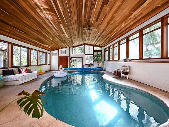 This house truly has it all—set on 40 acres of land on Bollers Lake in Goodview, it offers a rare combination of luxury, comfort, and country living just 2 minutes to Winona. Completely renovated throughout, the home showcases a designer chef’s kitchen with premium finishes, high-end bathrooms featuring custom tile and stone, and a stunning great room with soaring 20-foot ceilings. A private indoor heated swimming pool, complete with a fireplace and water feature, creates a year-round retreat right at home. The property includes a 3-car attached garage, plus a bonus outdoor wood stove capable of heating both the home and the pool room. With space for small livestock and zoning for agriculture and natural resources, the opportunities are endless—whether you envision a private getaway, hobby farm, or lakeside estate. This one-of-a-kind property blends modern elegance with natural beauty in an unmatched setting.