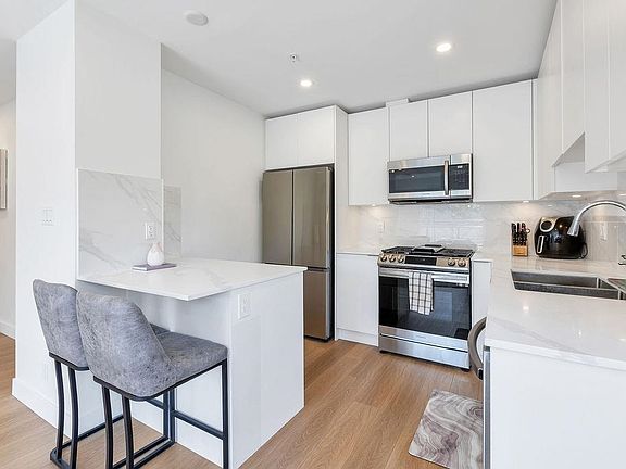 Fall in love w/ this rare southeast corner 1 bed + den on the ground floor of Estella. This beauty offers a unique, thoughtful layout w/ wrap around patio and coveted air conditioning, rare on this side of Shaughnessy. Features include: quartz countertops, stainless steel appliances, gas range, roller shade blinds, & wide plank white oak vinyl floors throughout. Steps from the vibrant heartbeat of Port Coquitlam, Westcoast Express, trails, dog parks, and the scenic Coquitlam River. Wheelchair accessible, pet-friendly, and low maintenance - perfect for first time buyers and pet lovers seeking carefree living with local amenities at your fingertips. Move quickly, and let this beautiful space start it's next story with you!
